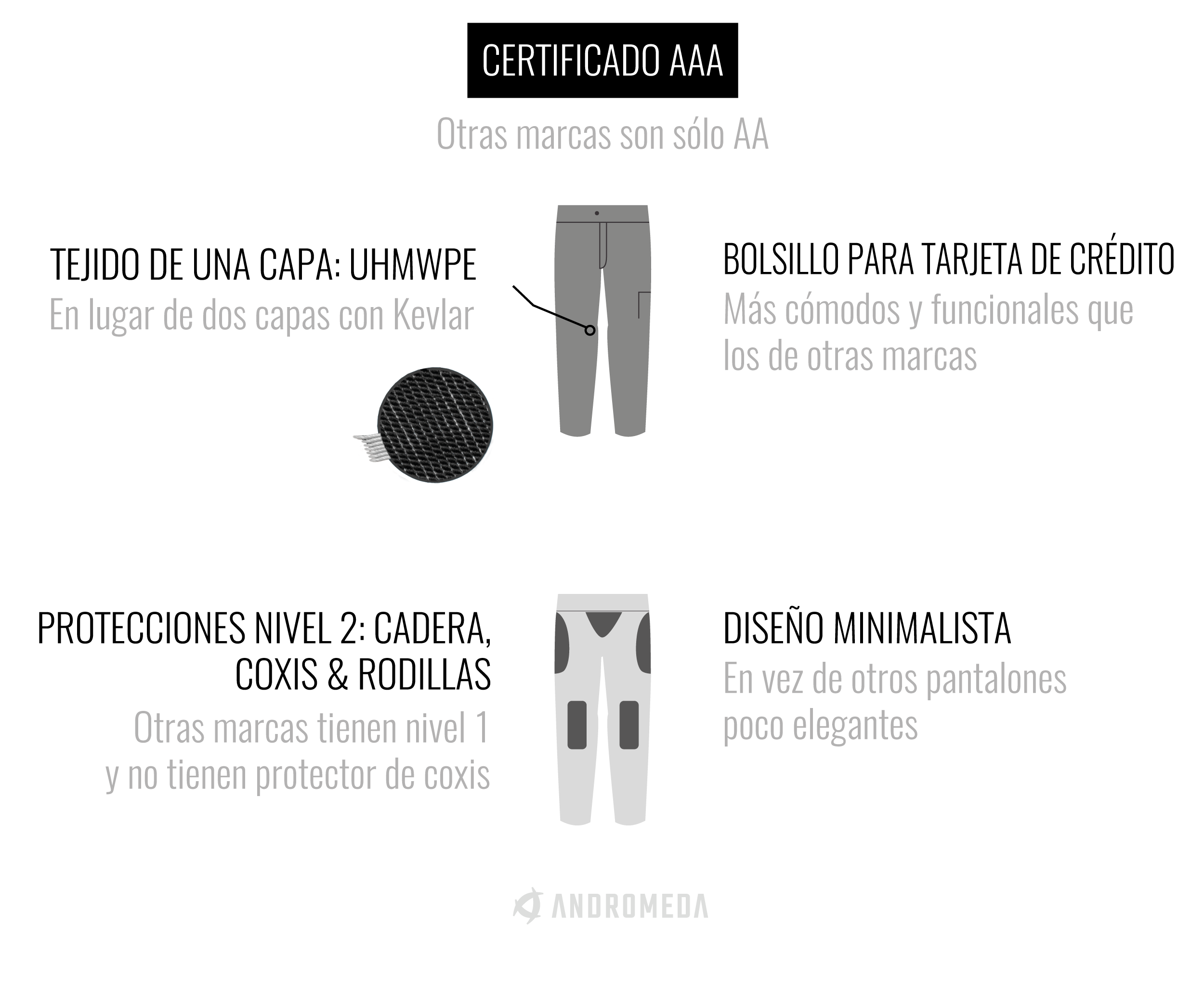 — Certificado AAA , el más alto nivel de seguridad en equipamiento para motocicletas.